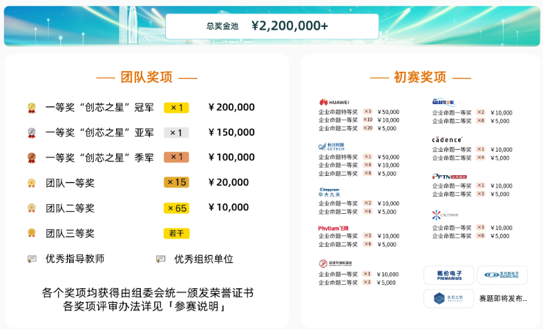 2.企业命题额外设立初赛专项奖,由企业专家评出,奖项设置详见各赛题页面。入围决赛的企业命题队伍继续参加大赛决赛各项奖项评比,与初赛奖项互不冲突。