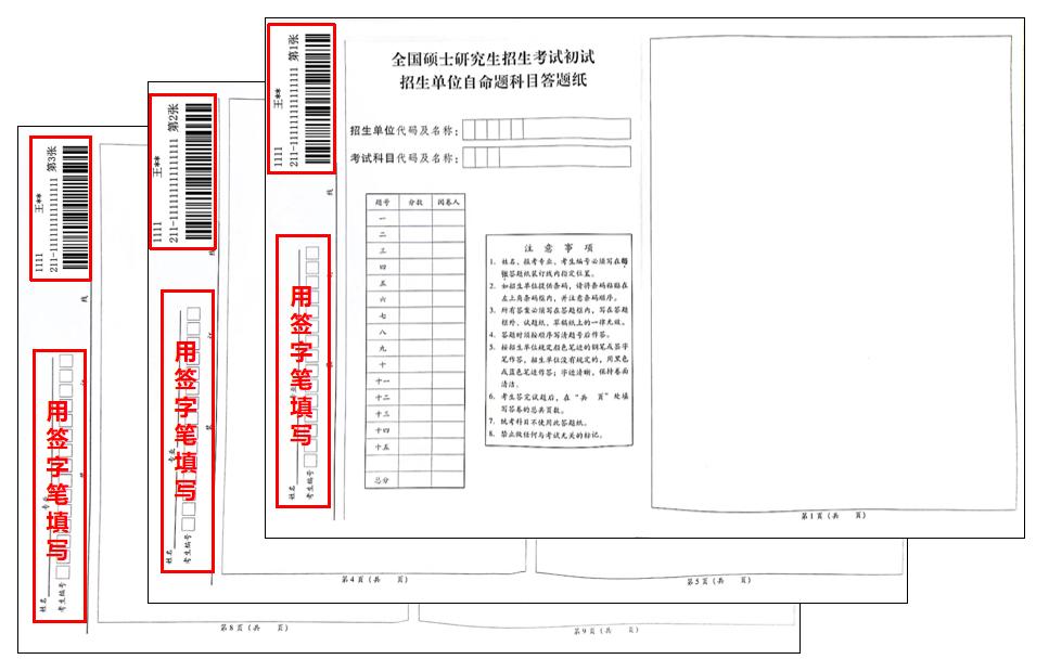 2. 发放的答题纸多于三张,只需将前三张答题纸粘贴条形码(无论前三张答题纸是否作答);如使用加页答题纸,加页答题纸只需填写好姓名、专业和考生编号,然后正常作答即可;如发放的答题纸只有两张,请将“第三张条形码”保留在试题袋上。