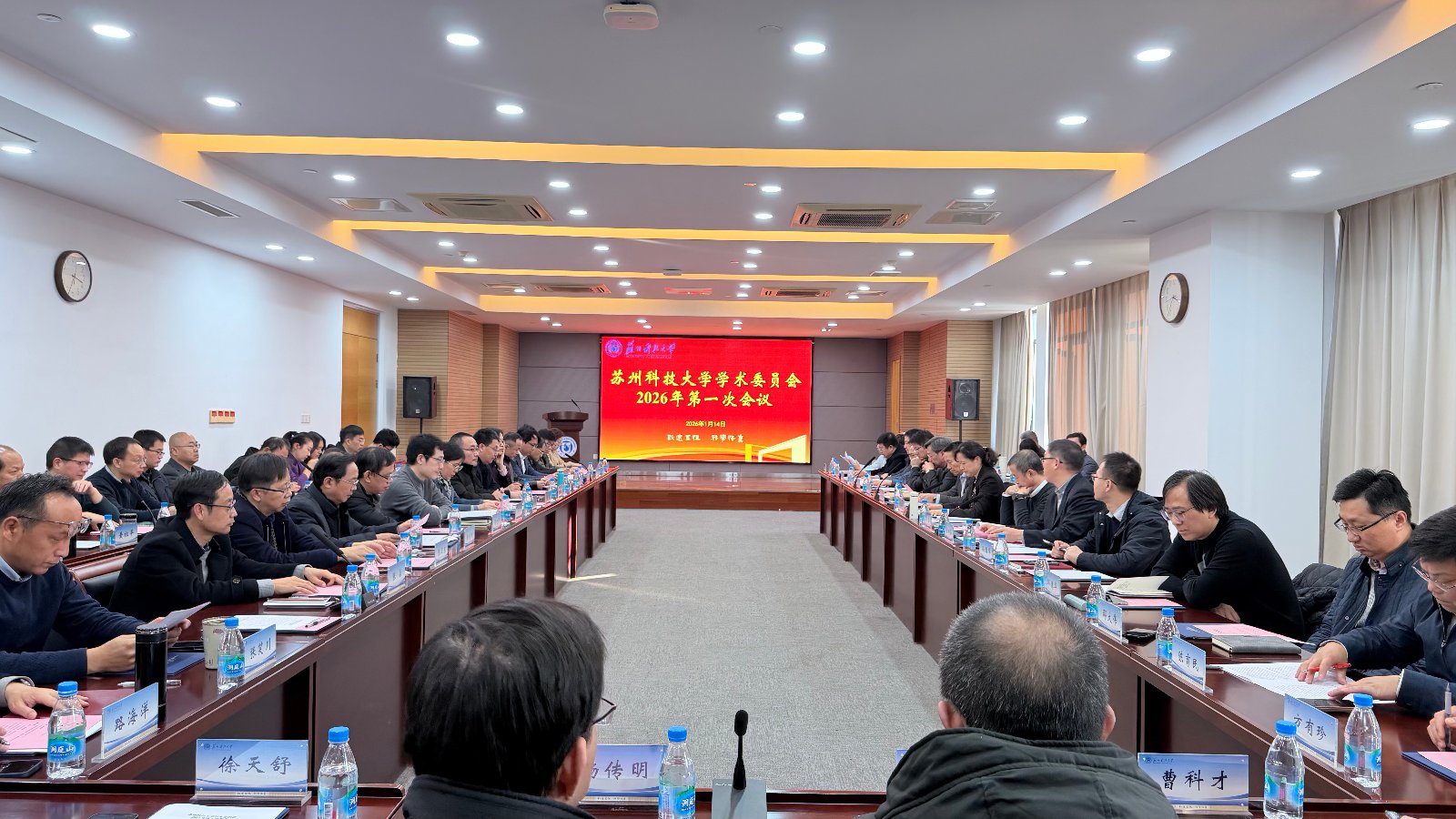 2026年1月14日下午,苏州科技大学新一届学术委员会第一次全体会议在图书馆八楼会议室召开。我校新一届学术委员会46名委员出席会议,青年教师代表及研究生、本科生代表应邀列席本次会议。
